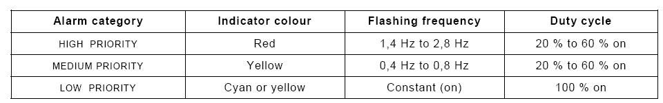 Table 2 – Characteristics of alarm indicator